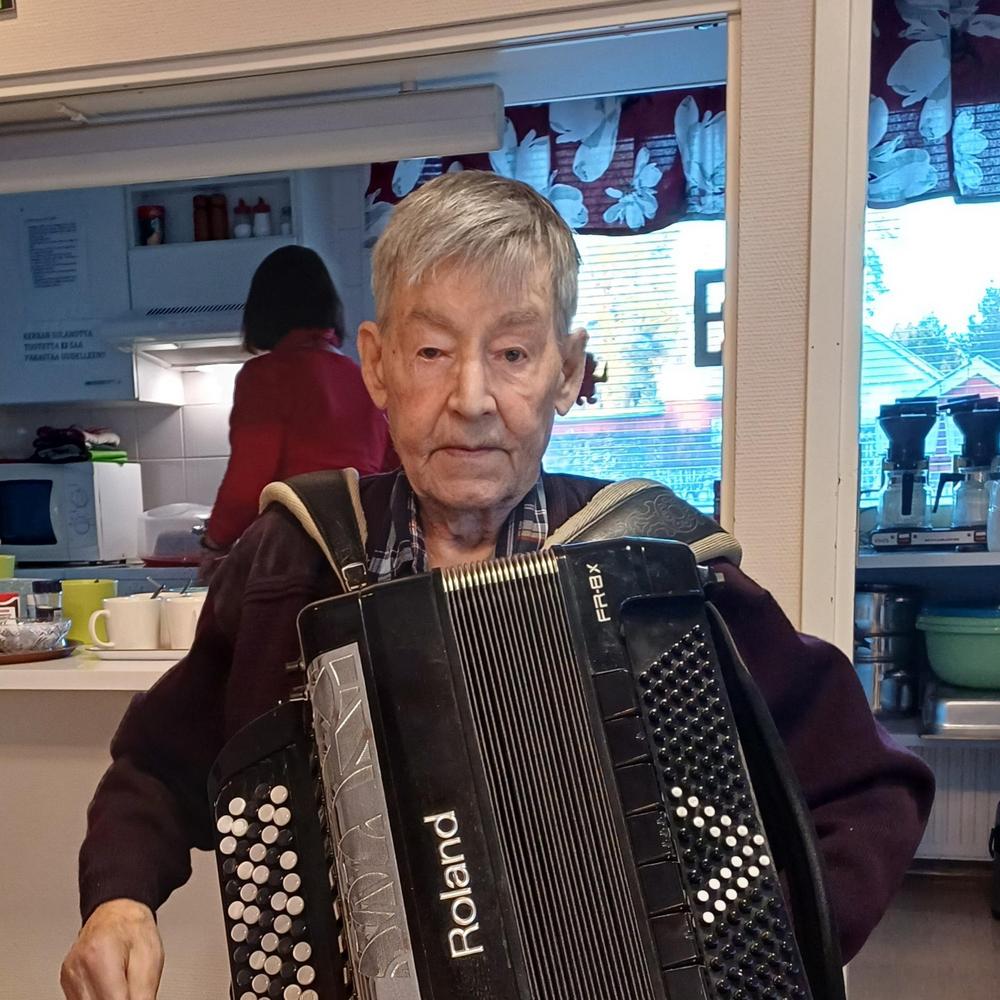 Keijo Nieminen säestää haitarilla ja Kai Kalteinen kitaralla