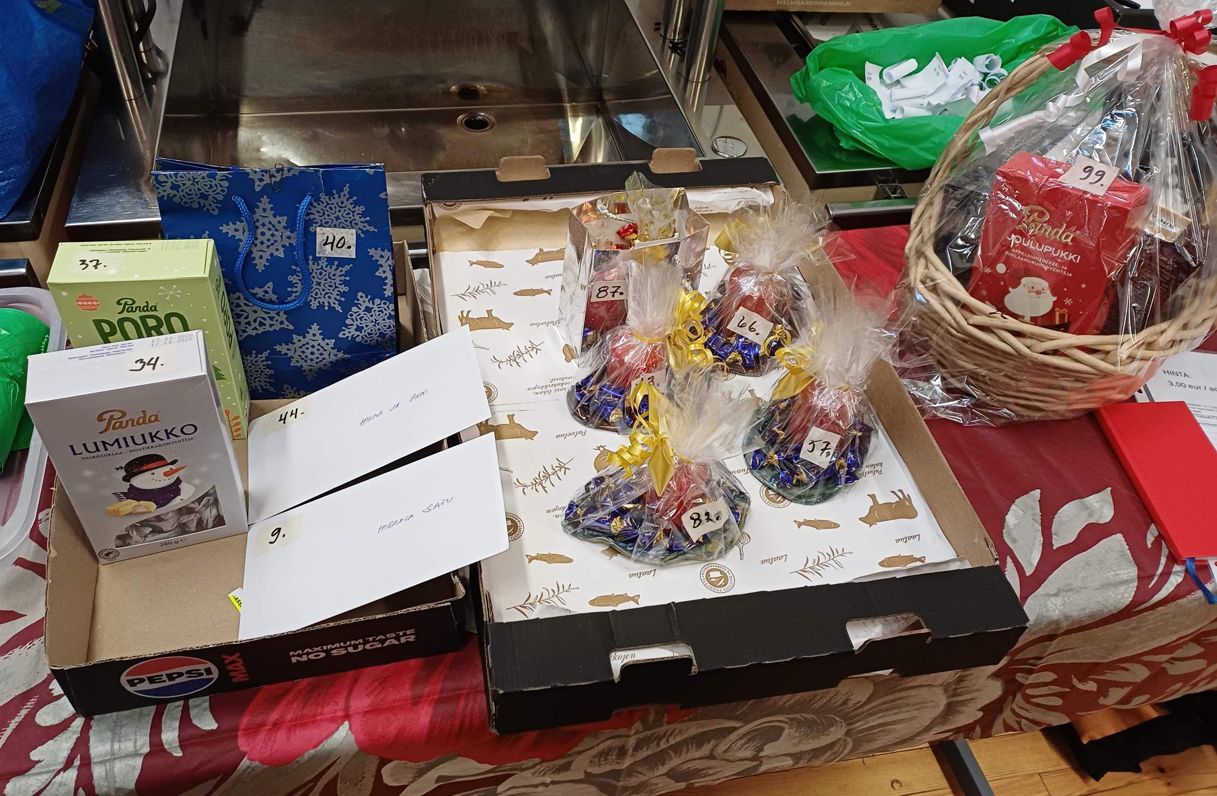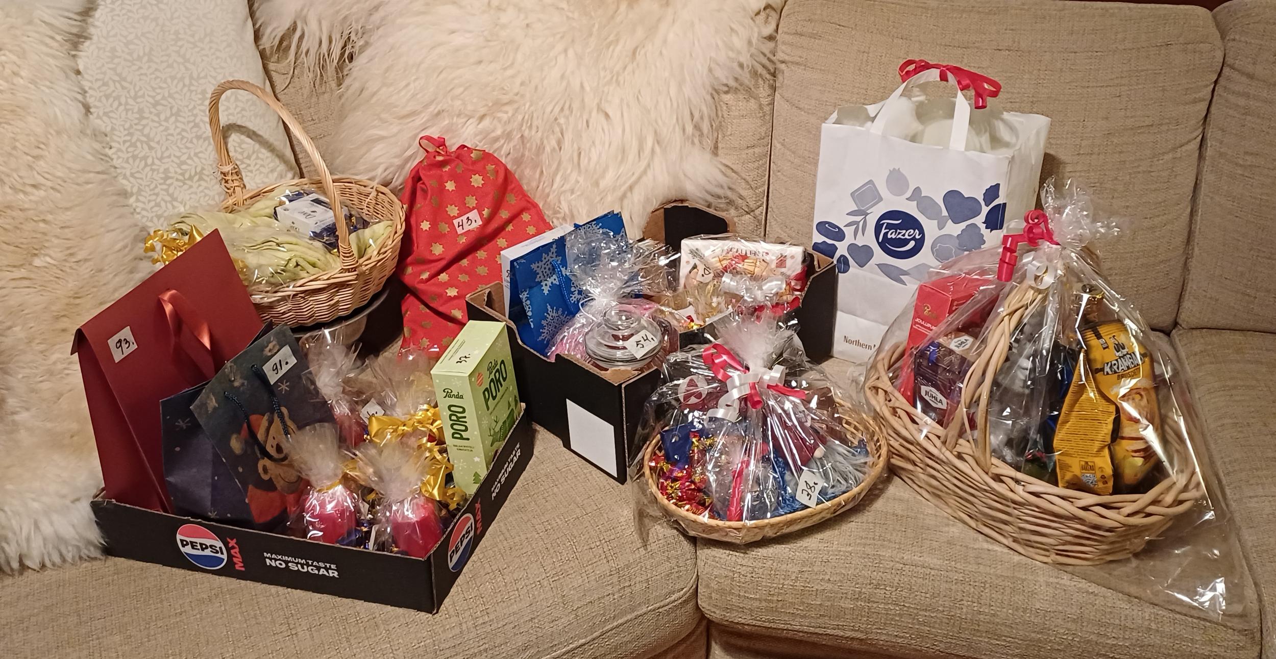 Meillä oli hyvä päivä❣️Kiitokset kaikille vapaaehtoistyön tekijöille ja myyntituotteiden lahjoittajille. Pienarpajaisissa riitti jännitystä viimeiselle tunnille asti, kunnes Marko Lipsonen voitti himoitun ison tuotekorin. Kahvion pöydissä oli mukavaa juttuseuraa. Kahvi/tee, pulla ja pikkuleipä maksoi vain 2 euroa. Myös leivonnaiset myytiin loppuun. Villasukkia oli melkein kaikilla pöydillä, joten niiden myynti jäi vähäiseksi.