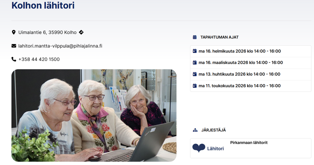 Aika: tiistai 17.3.2026 KLO 12-15 Paikka: Kolhon kirjasto, Postitie 5, Kolho Tarjolla mm. : - Opastusta paikalla olevilta vertaistukihenkilöltä, ota oma laite ja käyttöön liittyvät tunnukset sekä…