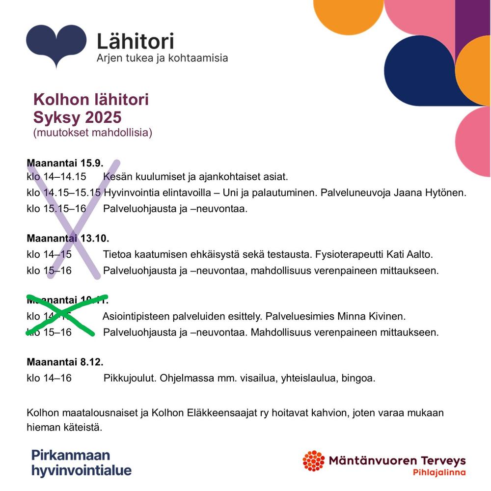 Kolhon kylän joulumyyjäisissä on Kolhon Eläkkeensaajien myyntipöytä Paikka: Kolhon koulun juhlasali Aika sunnuntaina 14.12.2025 klo 12:00 - 16:00 Myymme jouluisia leivonnaisia ja käsitöitä!…