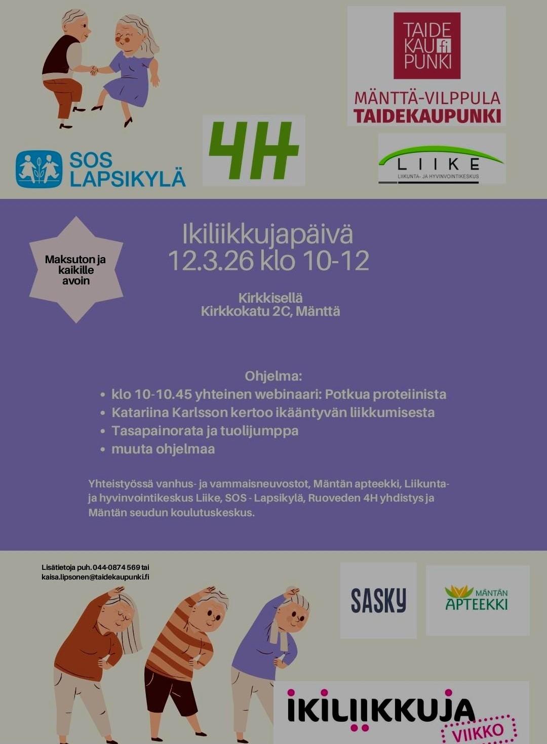 Ikiliikkuja -päivä 12.3.2026 klo 10 - 12 Mäntässä Kirkkiksellä, Kirkkokatu 2 C, Mänttä.